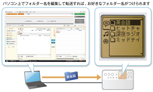 録音ファイルをお好きなタイトルをつけてフォルダーで管理できるから、再生したいファイルをかんたんに探せます。