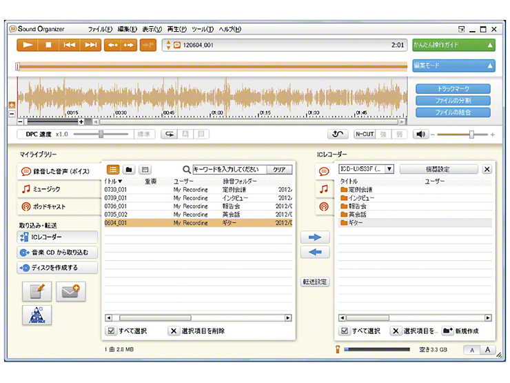パソコン用ソフトウェア「Sound Organizer」(本体メモリー内)