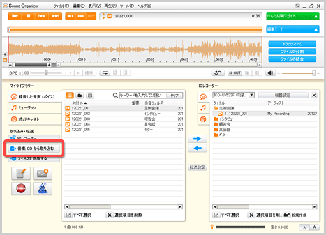 ICレコーダーで録音した音声ファイルだけではなく、音楽用CDやポッドキャストも取り込めます。