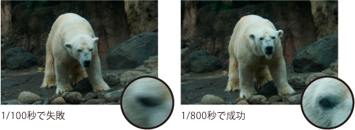 ピントが合っていたとしてもシャッター速度の設定を誤ると、ブレた失敗写真になってしまいます。シャープな写真に仕上げるには、できるだけ速いシャッター速度で撮りましょう。明るい場所で撮るか、ISO感度を高めれば、シャッター速度は速められます。