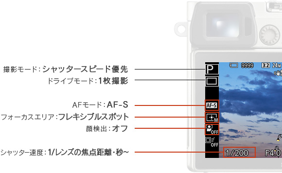 動かない被写体に対しAFモードは[AF-S]を選択します。ピントが空などの背景に抜けやすいシーンでは、ピンポイントで的確なピント合わせができる[フレキシブルスポットAF]を選択してください。手持ち撮影の場合、手ブレせずに撮影できるシャッター速度の目安(1/「焦点距離」秒以上)を知っておくと便利。「50mmレンズなら1/50秒以上で」ということになります。