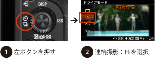 決定的瞬間を逃さないために、連続撮影モードでたくさん写すのがポイント。α6000では、Hiモードで11コマ/秒の高速連写が可能です。あっと驚くような一瞬が撮れるかもしれません。惜しみなくシャッターを押し続けてください。