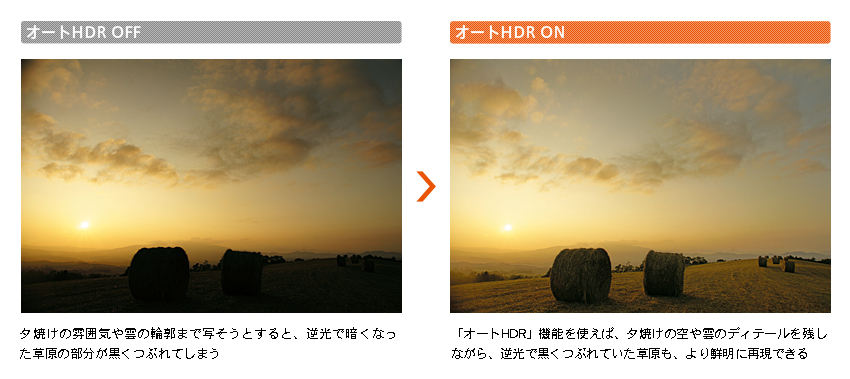 製品情報>デジタル一眼カメラα>Aマウント>オートHDR(ハイダイナミックレンジ)