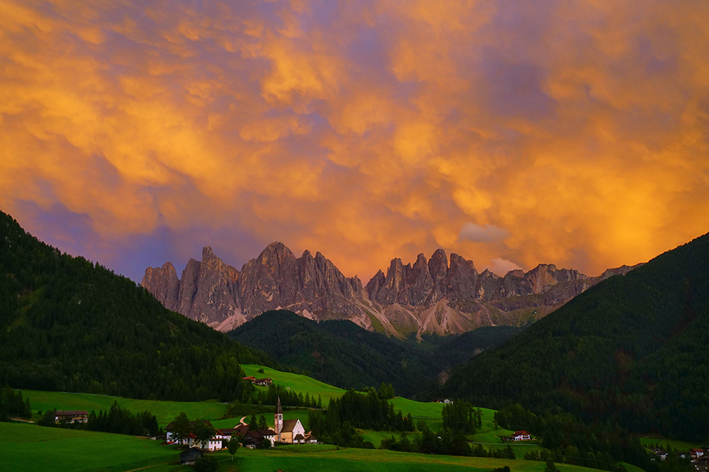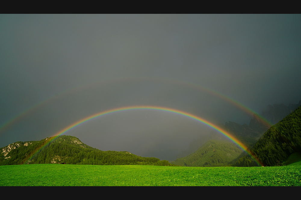こちらはイタリアのフネスという村で撮った虹の写真です。虹は非常に暗いんですが、シャッタースピードは遅いのにこの高解像感はすごい。なおかつしっかりと端の方までぶれずに、流れずに、高い解像感で撮れています。これは16-35mm(SEL1635Z)で撮影しましたが、この組み合わせは僕のベースになっています。少し降っている雨も、結構つぶれずに残っています。