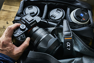 ご覧のとおり、α7RⅡは片手でもひょいっと持ててしまいます。私の手は、特に大きいわけではありません(笑)レンズは広角域〜望遠域までをカバー出来るようにしつつ単焦点を1本という組み合わせが多いです。カメラは常時、首からぶら下げ、レンズはすぐに取り出し易いように縦位置で収納できるバックを重用しています。