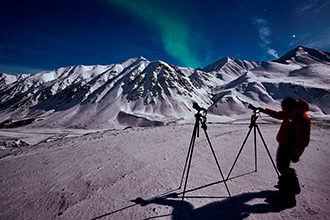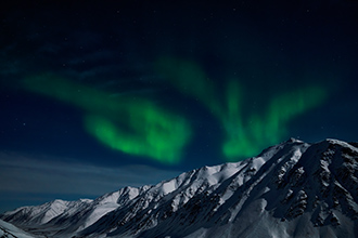 アラスカ α7SⅡで動画を、α7RⅡで静止画の撮影に臨みました。 「必ず雪山の上空にオーロラは出る」ただそう信じて登りました。