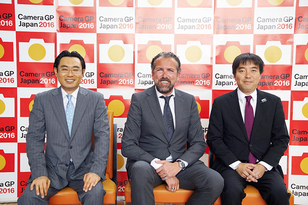 審査員を代表してカメラ記者クラブ代表幹事 石川孝宏氏(写真左)、特別会員TIPA会長Thomas Gerwers氏(写真中央)、カメラグランプリ 2016実行委員長 福田祐一郎氏(写真右)の3人に今回の受賞理由についてお話を伺いました。