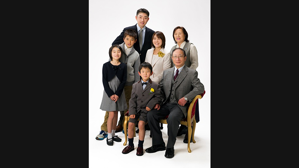 中嶋:例えばこちらの写真。ご家族でスタジオに入って来られた時、正直「うわ〜!」と思いました。みなさん、写真館に挑戦しているんじゃないかと思うような服装で現れまして(笑)。おじいちゃまのグレーのツイード、手前の男の子の凸凹感のある服、お姉ちゃんのスカートの細かい千鳥格子……。どの方もモアレの原因になるようなデザインの服ばかりで。しかし、『α7RⅡ』の4240万画素の高解像度をもってすると、モアレがほぼ出ない。端の部分は微妙に出てしまうところがありますので「ほぼ」という表現をしましたが、メインの部分はまったく出ません。そのため、画像処理をしなくてもまったく問題なし! この写真も全然手を加えていないんですよ。さらに、『α7RⅡ』には「顔検出」という機能がありますので、手前の男の子から後ろのお父さんまで、合わせた絞りをカメラが的確に判断して全員の顔にしっかりピントを合わせてくれます。ピントが外れることがほとんどないのは、ありがたい限りです。