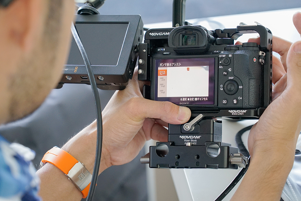 昔からカメラの一番いいところ、テニスでいうスイートスポットみたいに、機種の一番いいところはなんだろうと探るのが好きなんです。だからオフや実際の現場では、何度も何度も試します。監督に専念するため、自分のカメラをカメラマンに渡して撮影してもらうこともあるのですが、初めて使う人にも設定を覚えてもらわなければいけないので、誰よりもカメラのことを把握しておかないといけません。
