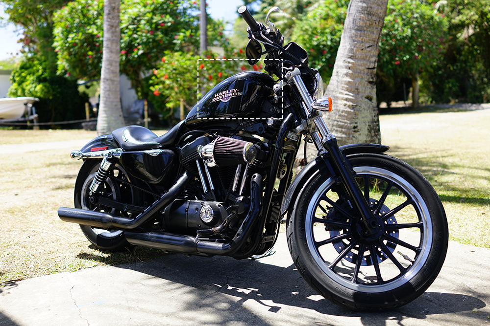 はい。この一枚もそうですね。街中に停めてあったHARLEYを撮った写真ですが、これも拡大してみるとRX1RⅡのスゴさがよく分かりますね。バイクのボディに反射する青空や木々までしっかり描写されており、バイクの質感をはっきりと感じ取れます。