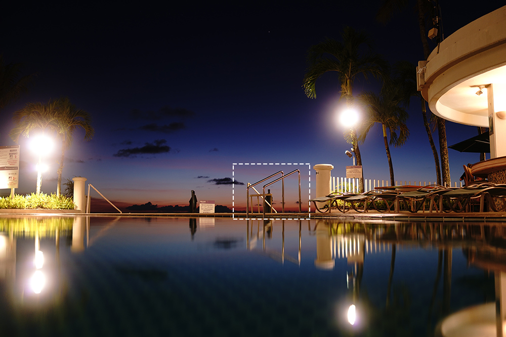 これはホテルのプールサイドで撮影した写真ですが、この写真はRX1RⅡじゃなきゃ撮れなかった写真だと思っています。拡大して見てみると・・・手すりのリアルさに驚きませんか?金属のツヤ・質感までしっかりと表現されています。また、プールの水面に反射する手すりにも、とてもリアリティがありますね。繰り返しお伝えしてきた通り、これがRX1RⅡのレンズ一体型だからこその緻密な描写力だと思います。
