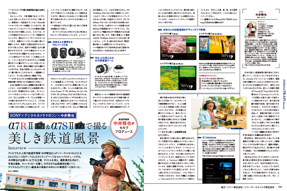第一回目の中井氏セルフプロデュースの広告は、8/20発売のデジタルカメラマガジンに掲載されていますが、これからαUniverseでは毎月、中井氏渾身の想いで制作された広告の裏側を、本誌発売に先んじて中井氏のコラム形式でお届けしてまいります!今回は、これから発売になる9/20発売号の裏話。