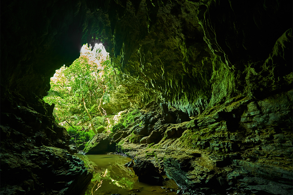 密林の中で見つけた鍾乳洞です。少し洞窟内に歩を進めると外の熱気が嘘のようにひんやりとした空気が流れていました。