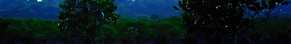 それから余談になりますが、シルエット状のマングローグ、そして後方の山々が、一見すると真黒な面なのに、それらが立体的に描写されていたことにも驚きました。何故か?と思い、写真の中央部、当該部分だけを切り取って拡大したものがコチラです。分かり易いように明度を極端に上げてあります。一面が黒の筈が、マングローブの葉も後方の森と山もちゃんと写っていたことが判ります。帰宅して画像チェックをしていて気付き、これには 思わず声を上げました。
