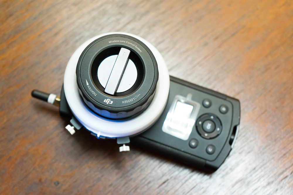 ワイヤレスフォローフォーカス(写真右)はタブレットでチューニングできる。また、MoVI自体も水平を保つ、チルトしない、追尾を早くしたり遅くしたりといった設定をワイヤレス側でできる。