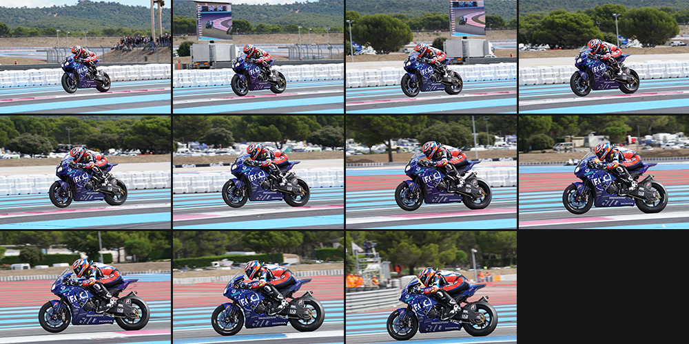 約2400万画素でAF・AE追従しながら11コマ/秒撮れるのはものすごいメリットです。例えば4コマ/秒と8コマ/秒でも全然違っていて、風景用とスポーツ用くらいの差があります。24時間耐久レースをα6500で撮影したのですが、連写が生きたのはバイクの急加速シーン。AF・AEで追尾しての撮影でしたが、被写体の動きが速くてもしっかり付いていけていました。8コマ/秒では連写中もほぼタイムラグがなくライブビュー表示ができるので、被写体を追いかけやすいのも利点です。