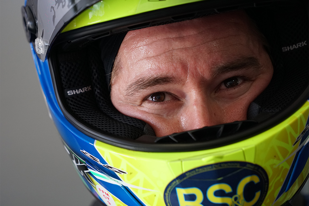 選手の顔のアップを撮る時ですね。バイクレースの場合、選手はヘルメットをかぶっている時間の方が長いので、シールドの奥の表情を撮るには望遠でグッと寄らなければならないんです。選手との距離が遠ければ遠いほど長いレンズを使わなければなりませんが、5軸手ブレ補正があることで安心してズームアップできました。