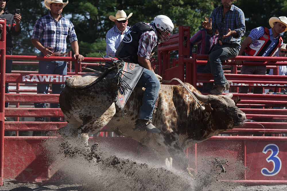 ロデオ競技を2本のズームレンズ(FE70-200mmF4 G OSS、FE70-300mmF4.5-5.6 G OSS)で追いました。絞りは、前者のレンズで「F4」、後者は「F5.6」。ギャラリーや柵がくっきり写るとうるさい感じになるので、競技者と牛を強調したい。そして、シャッタースピードを稼ぎたかったので、できるだけ開放で撮りたかったんです。被写体は上下に激しく動きましたが、連続撮影モード「Hi=8コマ/秒」を使っての撮影ではタイムラグがほとんど発生しないのでラクに追えました。フォーカスエリアは「ワイド」に設定。当初、競技者がゲートの内側に待機しているときから、競技者にピントを合わせてました。でもゲートが開いて競技者が飛び出すと、一瞬、奥のギャラリーや柵にピントが合ってしまい被写体への合焦がやや遅れてしまう。そこで競技者がゲートを出てからピントを合わせるように変更しました。するとばっちり。一度、捉えたらどこまでも追従してくれましたし、追えているって実感もありました。ゲートを出てからは、シャッターは押しっぱなしです。約36秒間のフルまで押しつづけたこともありました。次から次へと競技者が出てくるので、撮影中の画像の確認は全部できません。書き込み途中でも再生ができるので、書き込みが終わった初めの何枚かで、構図やピントなど必要な情報を素早くチェックしていました。自分が撮ったものがどういう状態なのか、数枚だけでも確認できるのはやはり助かりますね。すべて撮り終わったあとにあらためて確認すると、競技者と牛が構図から外れているとき以外は、ピントはほぼ10割、といった印象です。前後左右に飛び散る砂埃、牛のヨダレや毛までリアルに描写できていたので、感心しました。正直なところ僕らでも、ロデオみたいに動きに予測がつかないものでベストな1枚を仕留めるために、これは助かります(笑)。でも考えて撮らないと恐ろしい枚数になりますね。