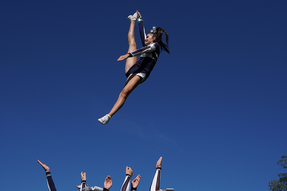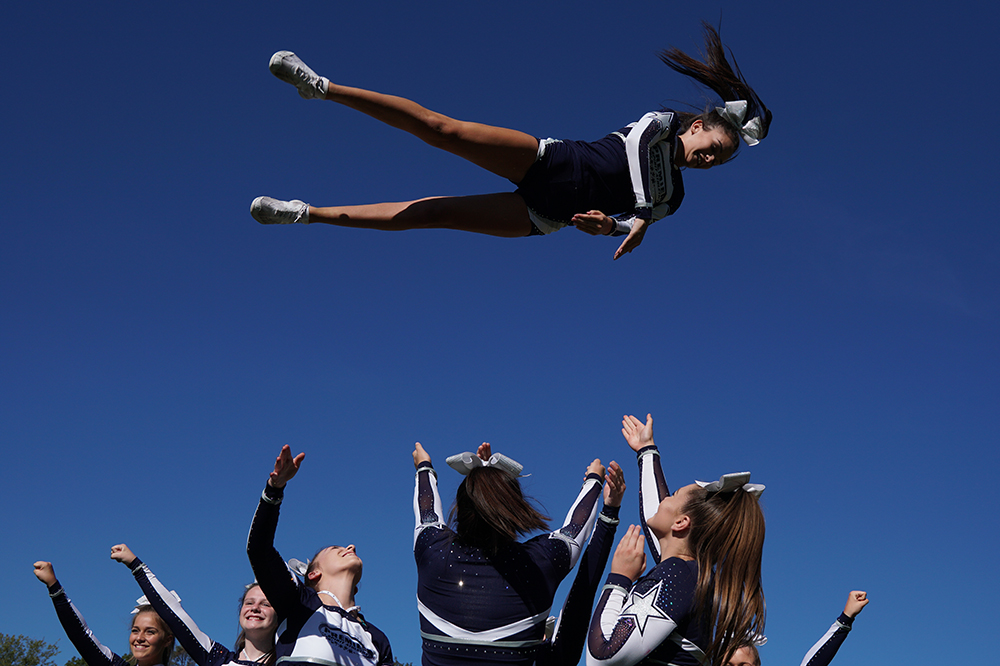 チアリーディングの練習風景を24-70mmのGマスター(FE 24-70mm F2.8 GM)で撮りました。焦点距離は40mm(35mm判換算で60mm相当)。絞りは「F5.6」、フォーカスエリアは「ワイド」、連続撮影モード「Hi=8コマ/秒」に設定しました。飛んでいる被写体の瞳からつま先までバリバリにピントはきていますし、下で支えるチアガールの指先や髪の毛までクリアに描写されています。なにより、撮影中にピントがしっかりきていると確信できることが大きいですね。通常、一眼レフだと中央から被写体が離れるとちょっと不安になるんですが、このカメラなら安心です。構図の隅に被写体が動いても確実に捉えることができるので、本当に頼もしい。撮影中に安心できるか否かって、失敗が許されないプロカメラマンにとっては非常に大きなファクターだと思います。
