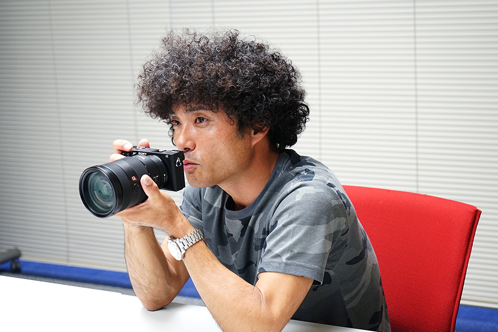 グリップはちょっと深くなったそうですが、言われて初めて気付きました。写りの性能だけでなく持ち歩きやすさやフィット感も進化しているわけですね。ボディ本体の重さ(約410g)にGマスターの望遠ズームレンズ(70-200mm F2.8 GM OSS/約1480g)をつけると、当然、フロントヘビーになりますよね。でも僕の場合は、撮影時にはレンズを左手で支えて構えるというフォームがいつの間にか身に付いて、むしろ手ブレ、レンズブレのリスクは減りました。重さやサイズが変わらないのに、機能がしっかり進化しているのは、単純にすごいって思いますよ。