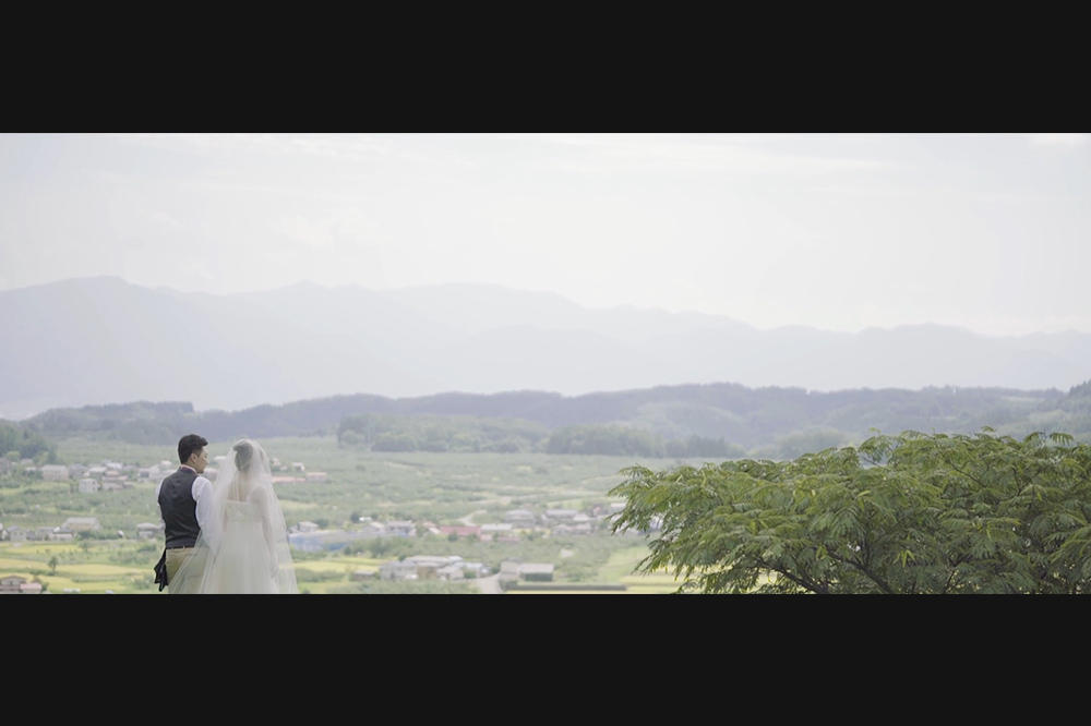 ――ウェディングムービーのトレンドはどうなっていますか? これまでのウェディングムービーは、何が起こっていたのかを記録する映像でした。ところが、10年ほど前に海外の映像チームである「stillmotion」がウェディングムービーでエミー賞を取ったのをきっかけに日本でも「記録に残す映像」から「記憶に残るシーンを集めた映像」に流れが変わり始めました。そこにいる人をただ記録し、イベントを順番通りに追う撮影方法から、新郎新婦や参列者の気持ちがこもった言葉や表情をフィーチャーしてそれらをベースに映像を組み立てていくという手法が日本でも多く取り入れられるようになりました。私も結婚式を撮影するときは、新郎新婦が何を大事にしているか、その気持ちはどこに表れ誰に届いているのかなど、2人のその時の想いが映像に残せるように意識して撮影しています。例えば、こちらの新郎新婦が丘に立っているシーン。