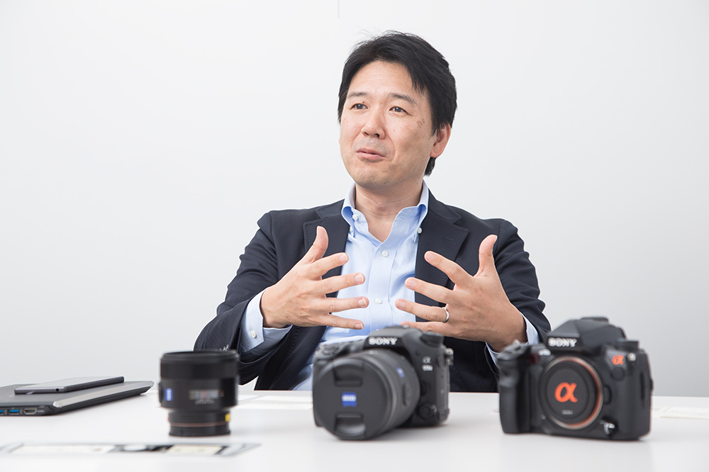 田中 一瞬を捉える静止画と被写体を追い続ける動画はまったく違う感覚だと思います。国内のユーザー層を考えると動画を楽しまれるお客様はまだ少ないと認識していますが、欧米では両方の表現を楽しまれるお客様が多いのが実情です。海外のマーケットを考え、Aマウントのレンズを使って動画を楽しみたいという世界中の方にお応えしたものです。
