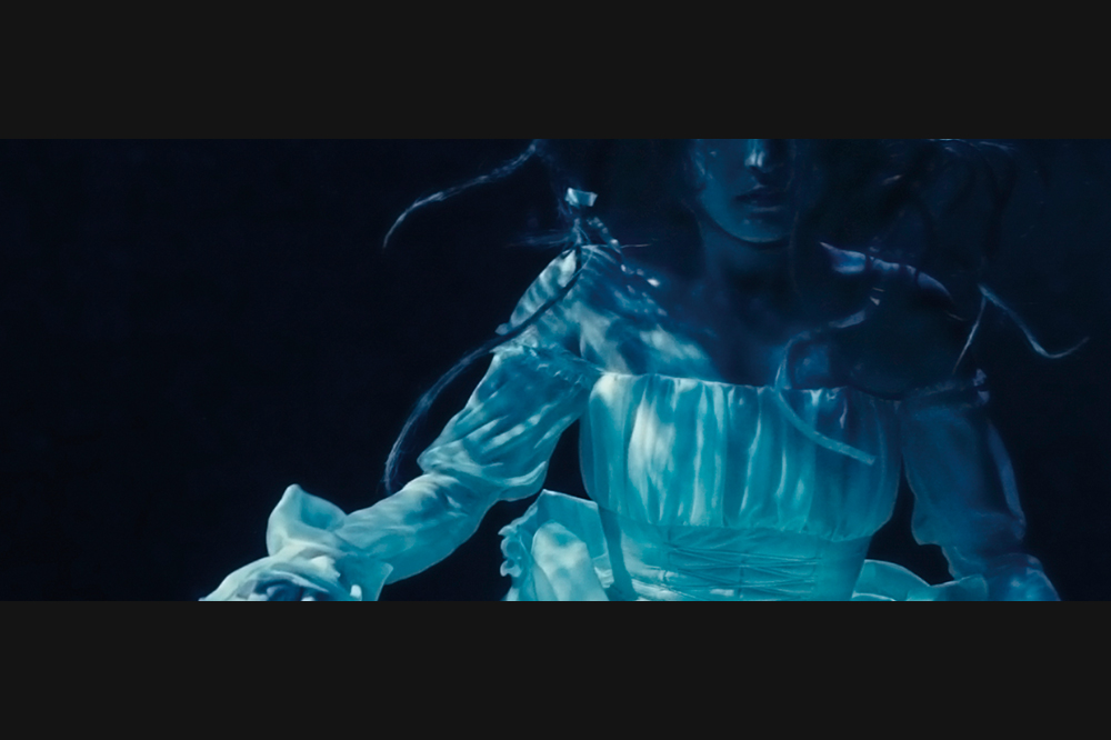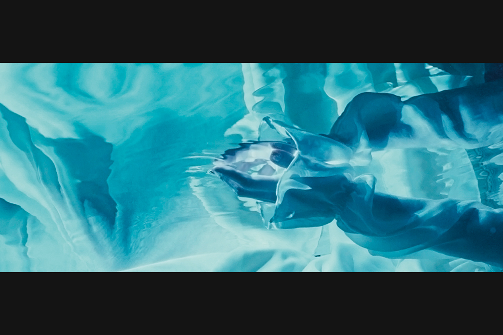 池谷 ダイビングの練習用のプールで撮影しています。沙也加さんが「正直ちょっと死を意識しました」とコメントしてましたけど、恐怖という感情は大切で、その必死な感じが生命力を喚起させます。ただやはり水に慣れていない人が暗い水槽に潜るのは怖いことなので、がんばっても30秒ぐらいが限界です。ソニーα7S IIは120pのハイスピード撮影ができるので、30秒の撮影時間でも4倍の時間(30p再生の場合)が確保できます。時間の流れをゆっくりさせることで優雅さが生まれたり、幻想的なイメージを創り出しています。 その時、僕はどうしているかというとボンベを背負うと泡だらけになってしまうので、素潜りで水深5mの水槽の2mぐらいの位置で待っています。