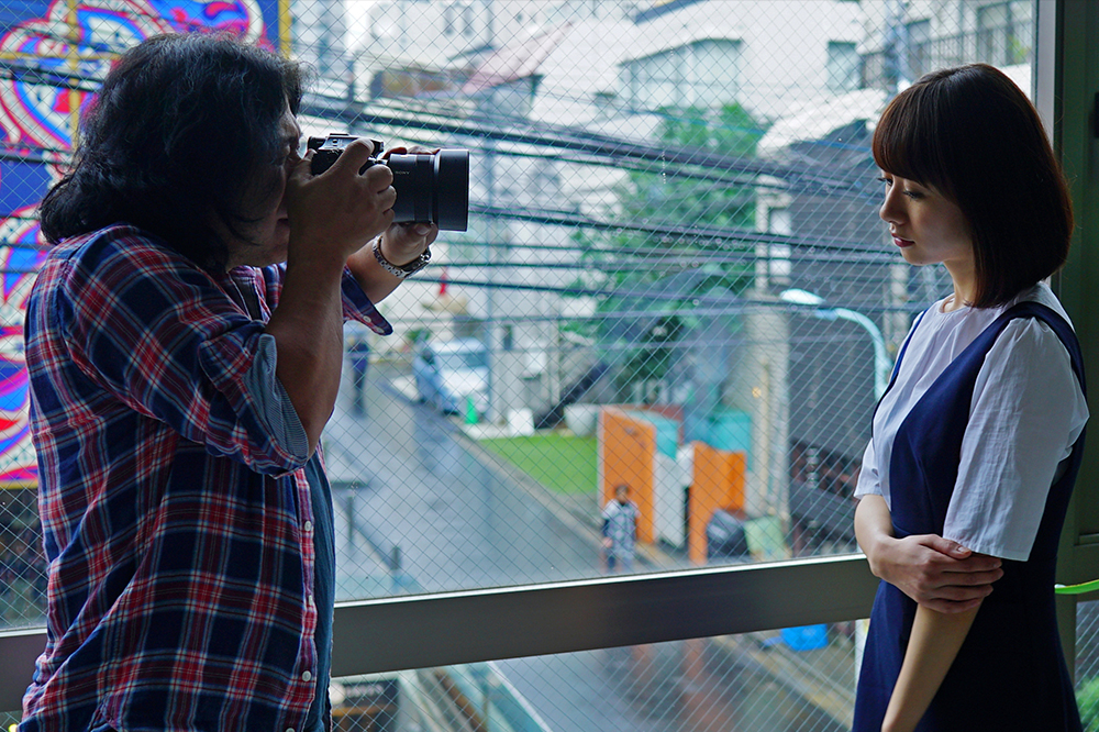 撮影当日は朝から強い雨で、約束の撮影時間になってようやく止んだ感じでした。このモノクロの写真は、雨が止んで間もなく、窓から差し込む自然光で撮ったα99 IIファーストショットです。どうでしょうか?モノクロだと描写の質感勝負になるので、わざとモノクロで撮ってみたのですが、ウオズミは素晴らしいなっと感じました。肌のやわらかな質感、瞳の透明感、ダイナミックレンジが広いことが効いてる立体的な描写。撮影前からワクワクしていた気分が、この1枚目の描写力を見て一気に上がりました。断言しましょう。このカメラは絶対にポートレート撮影でも大活躍するカメラです。もちろんSAL50F14Zの力も大いにあるのでしょうけど。ではテンション高く、雨上がりの青山通り界隈でウオズミが撮影したα99 II撮りおろし新作を、是非ご覧ください。
