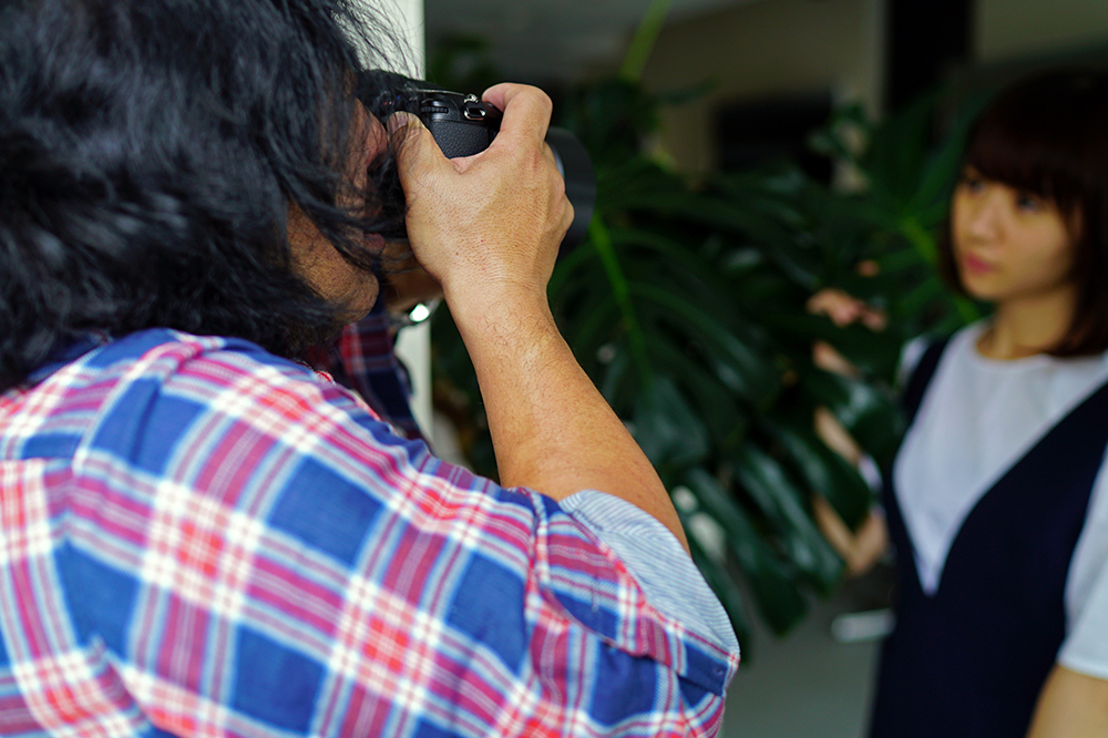 モデルさんは、昨夏からウオズミが注目している槙田紗子さんにお願いすることにしました。透き通るような、綺麗な瞳が印象的なモデルさんです。