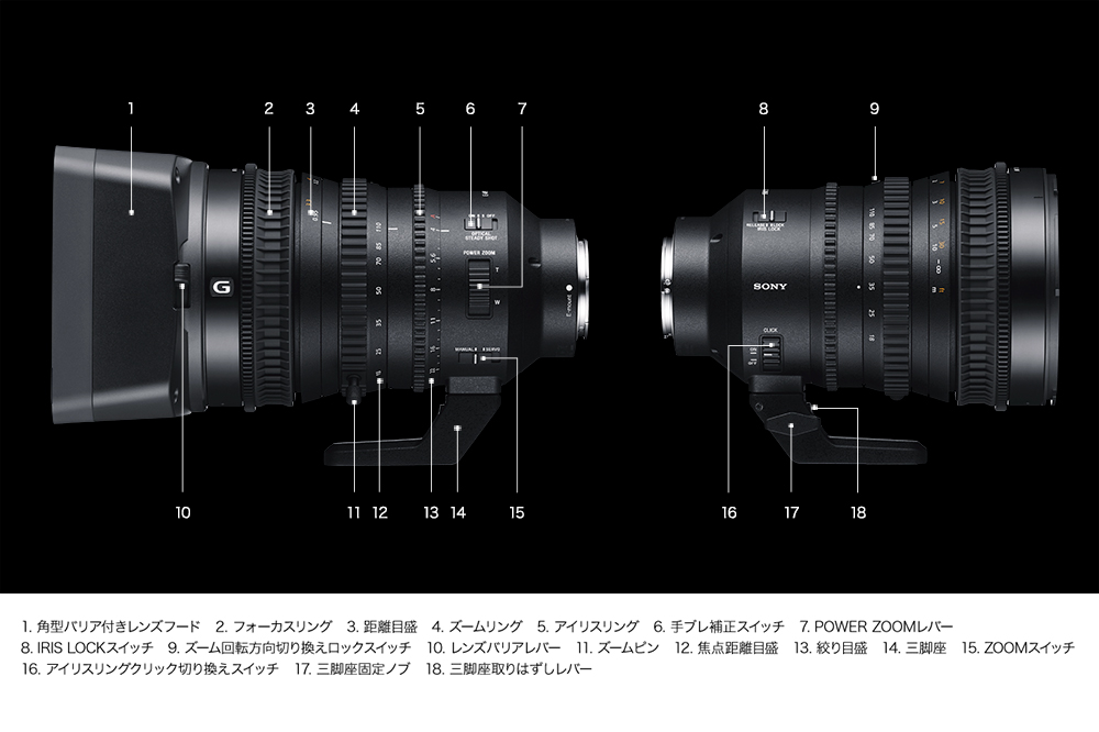 F4通しで6.1倍という高いズーム倍率を実現。また、ソニー独自のSMO(Smooth Motion Optics)機構が、ブリージング・軸ブレ・フォーカスシフトといった映像変動を徹底的に抑制するとともに、静粛性を実現しています。