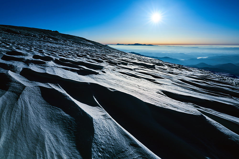 そして吹雪の中の登山を経て、急に風が止み太陽の光が差し込み始めた時、私の眼前には言葉にできないほどに美しい冬の光景が広がっていました。