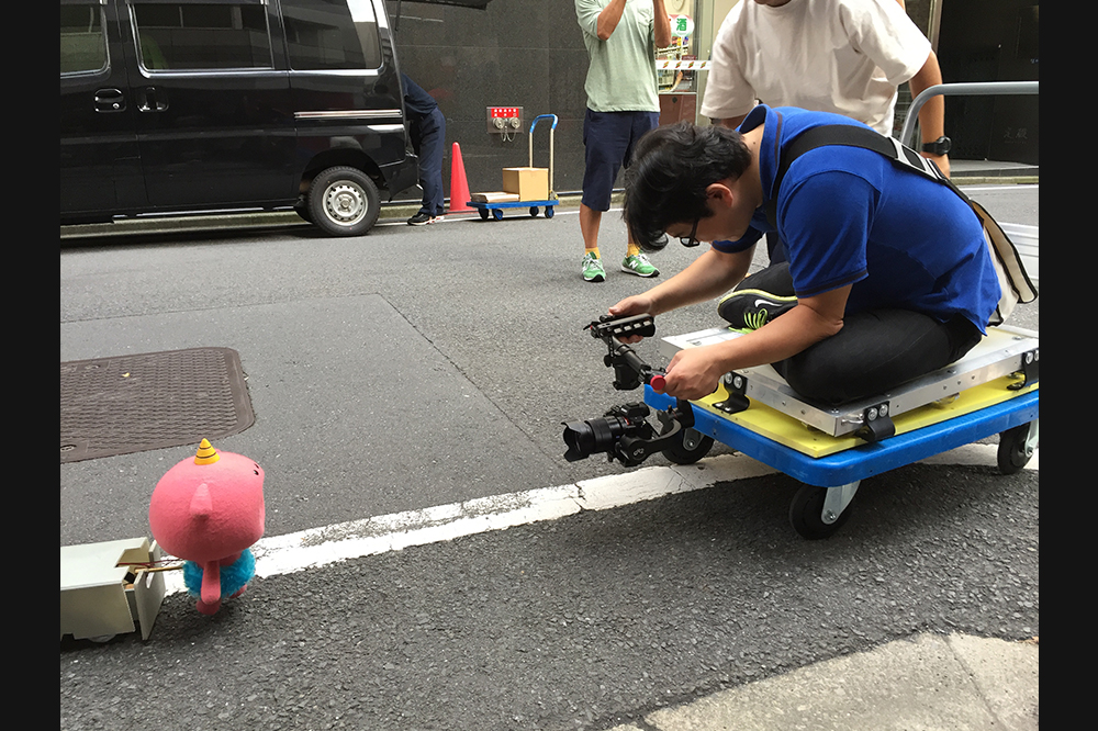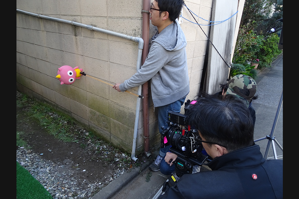 松:本番の撮影の前に、ロケハンやテスト撮影も行いました。キャラクターの仕掛けを動かす人の位置なども考えて、撮りたい画が撮れるのか、いろいろテストが必要だったんです。