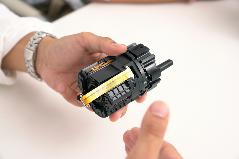 兼田:AF高速化と高い解像力の両立を実現するために検討を進めたところ、フォーカス群を分割して個別に動けるフローティングフォーカス機構にたどり着きました。それぞれの群は、光学的な役割・特性が異なるので、光学、メカ機構共に一番優位性が出せるフォーカスアクチュエーターの最適な組み合わせを様々なパターンで検討した結果、ダイレクトドライブSSMとダブルリニアモーターを採用するという答えにたどり着きました。応答性の優れるダイレクトドライブSSMとダブルリニアによるフローティングフォーカス構造採用により、超望遠レンズで最も重要なAFの被写体追従性能をこれまでにないレベルで実現する事が可能になりました。また、完全に独立して制御することが可能なフローティングフォーカス構造を採用することにより、各ズーム域の多様な被写体距離で変化する様々な光学収差を理想的に補正する事が可能となり、ズーム全域で至近から無限遠まで高い光学性能を実現しています。 さらに、ダイレクトドライブSSMとダブルリニアモーターをそれぞれの撮影モードで最適に協調制御する事で、静止画撮影だけでなく、動画時のノイズを最大限に抑えることができ、動画撮影にも適したフォーカス機構となっています。静止画と動画の両方で高い性能を発揮できるのは、このアクチュエーターの組み合わせだったわけです。