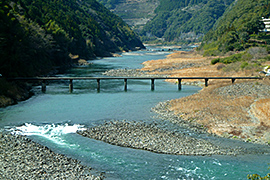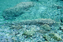 光の角度や水の深さで変わる「仁淀ブルー」。