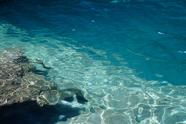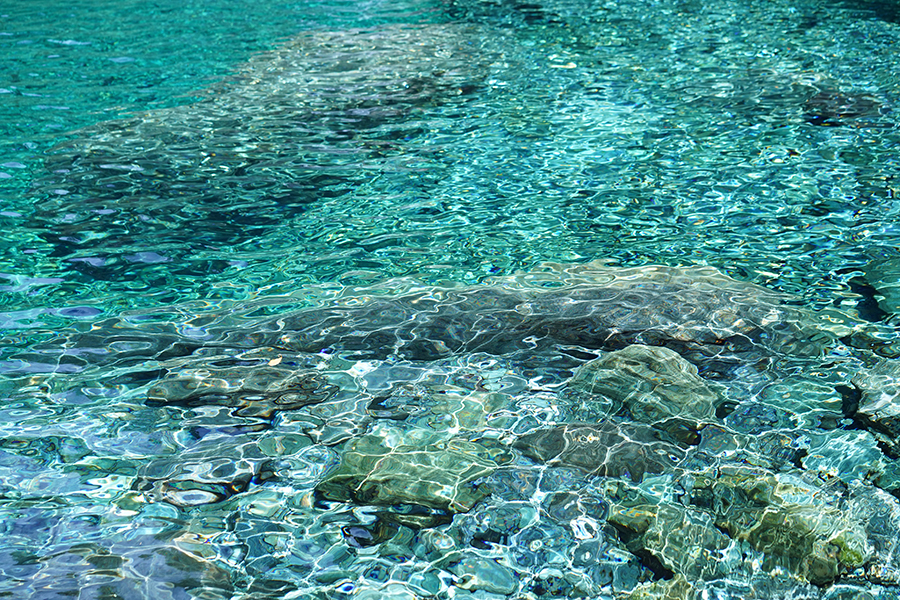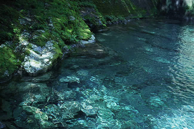 光の角度や水の深さで変わる「仁淀ブルー」。