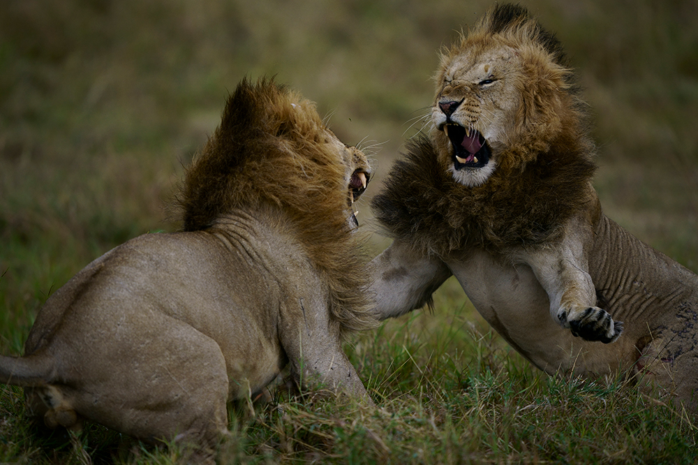 上の作品は、この組み合わせでなければ捉えることができなかった1枚です。私は今回のケニア撮影で、ライオンの格闘シーンを撮るためだけに動いていました。マサイマラという広大な国立公園の中でライオンの多そうな地域に狙いを定め、ライオンの群れすべてをチェック。一番アクティブに行動を起こしそうな群れに的を絞って、日の出から日没までずっと追い続けました。 何の前ぶれもなく始まった、この格闘シーン。反対側にメスと子どもがいたので、そっちを撮ろうと思った時に唸り声が聞こえたので、慌てて振り向き、カメラを構えました。振り向きざまに撮影したので、このレンズの取り回しの良さやAFの速さがものをいった感じですね。