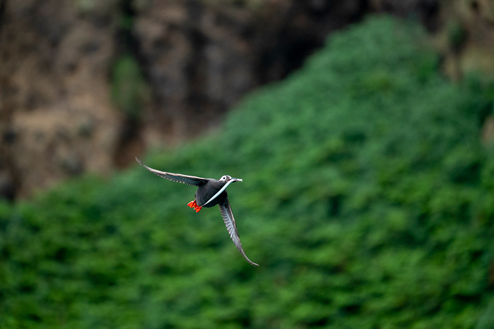 上の作品群もケイマフリですが、この鳥は時速80 kmという高速で空を飛びます。断崖にある巣で待つ子どものために、エサとなる魚を運び込む瞬間です。高速な動きでもα9と「FE 100-400mm F4.5-5.6 GM OSS」の組み合わせなら、驚くほど簡単に被写体を捉えることができます。鳥をしっかり追ってファインダーに納めてさえすれば、あとはカメラとレンズがきちっとピントを合わせて撮影してくれるので、被写体を追うことに集中できるのもありがたいことです。
