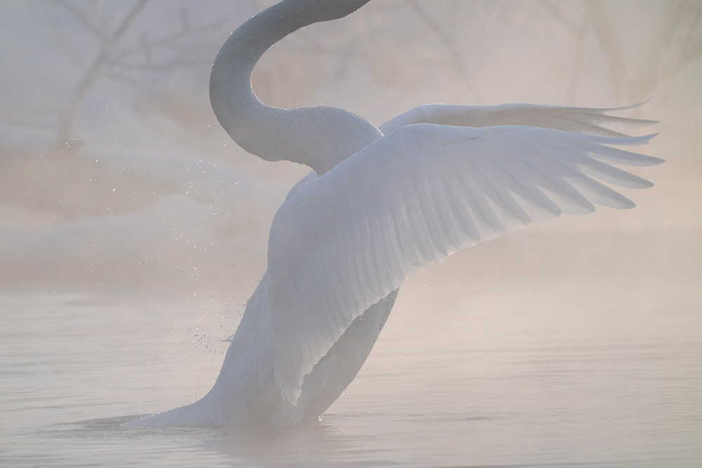 しかも早朝ですから、かなり寒い。それでもなんのトラブルもなく撮影できたので、耐寒性能は非常に高いです。温泉が湧いている場所なので水面は凍らず、蒸気がうっすらと白く立ちこめている状況で、羽を広げた瞬間を撮影しました。ハクチョウや蒸気の微妙な白が、とても繊細に表現できていますよね。僕は「厳しい場所にこそ美しさがある」と思っているので、今後も積極的にα9を極寒地に連れ出したいと思います。