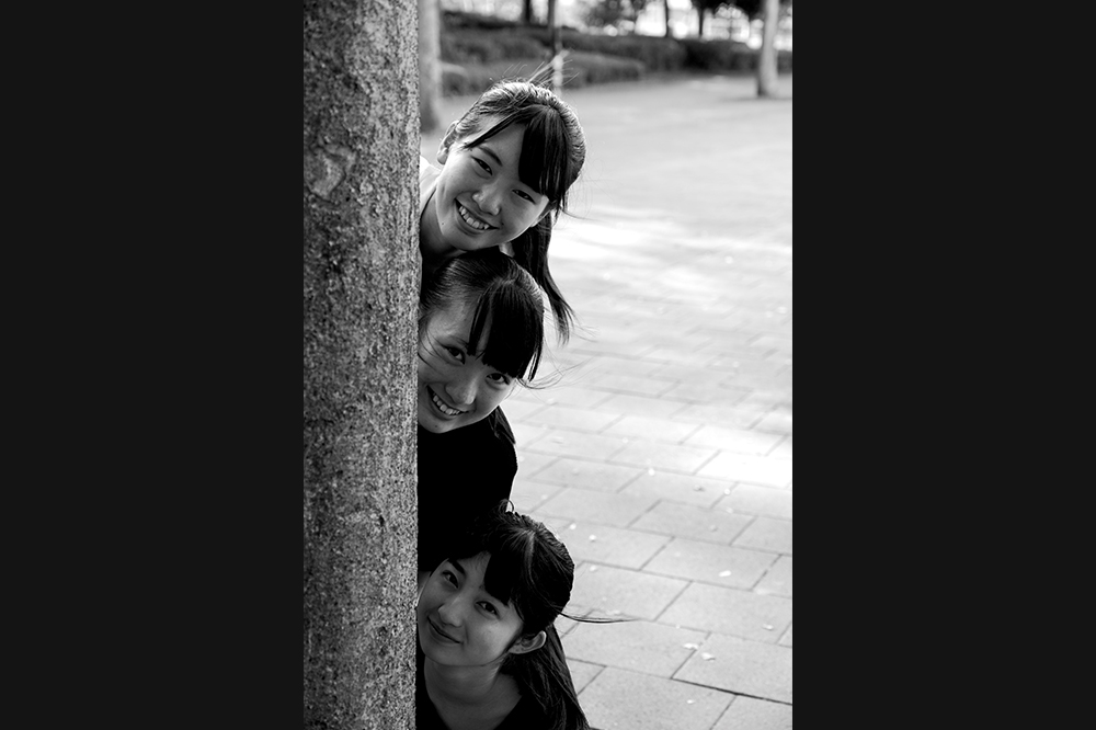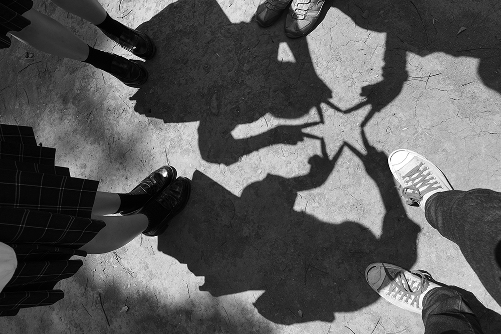 これもワークショップの流れで撮影した作品です。影を使うポーズは女子高生がよくやるので、彼女たちが遊んでいる時に「何をやっているの?」と声をかけながら撮りました。右下には、スニーカーを履いた僕がちゃっかり写っています(笑)。