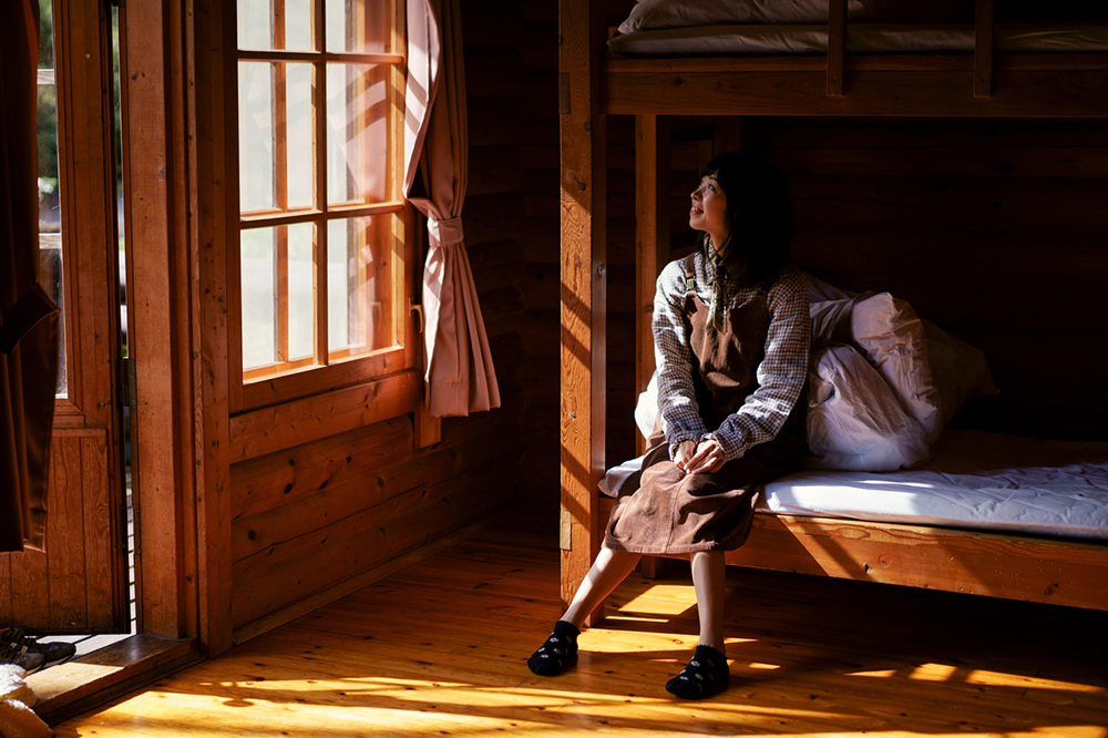 上の作品は、宿泊したコテージで撮影した1枚です。朝陽がとてもきれいだったので、友人とともに美しい光を撮影しました。こういうシーンでは明暗差が激しくなりますが、α7Cはダイナミックレンジが広いので、白飛びも黒潰れもなく、しっかりとデータを残してくれます。この時は光の部分の白飛びが心配でしたが、データはすべて残っていて思い通りのビジュアルに仕上げることができました。 先ほど光を意識して撮影する話をしましたが、この時もそうですね。光は刻々と表情を変えていってしまうので、瞬間を撮る瞬発力が必要です。「この光を撮りたい」と思った時、彼女はここに座っていませんでしたが、人物を入れたほうが光が引き立つと思い、すぐに座ってもらいました。最高の光を逃したくない瞬発力が必要なシーンでも、軽くて取り回しのいいα7Cは頼りになります。