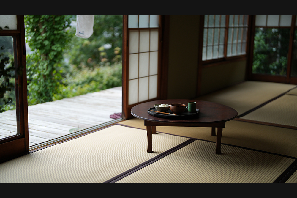 上は、どんな家で暮らしているのかが一枚でわかるお気に入りの作品です。ちゃぶ台の上の朝食も写っているので、どんな人が住んでいるのかも何となくわかりますよね。引きで味噌汁のお椀にピントを合わせて撮りましたが、F1.2の開放で撮るとちゃぶ台がとてもシャープで浮き立つような感じ。ピントを合わせたところは非常にシャープに写っていて、背景のぼけ感や光の表現も見事です。畳に落ちているちゃぶ台の影も古民家の雰囲気を引き立てているように感じます。
