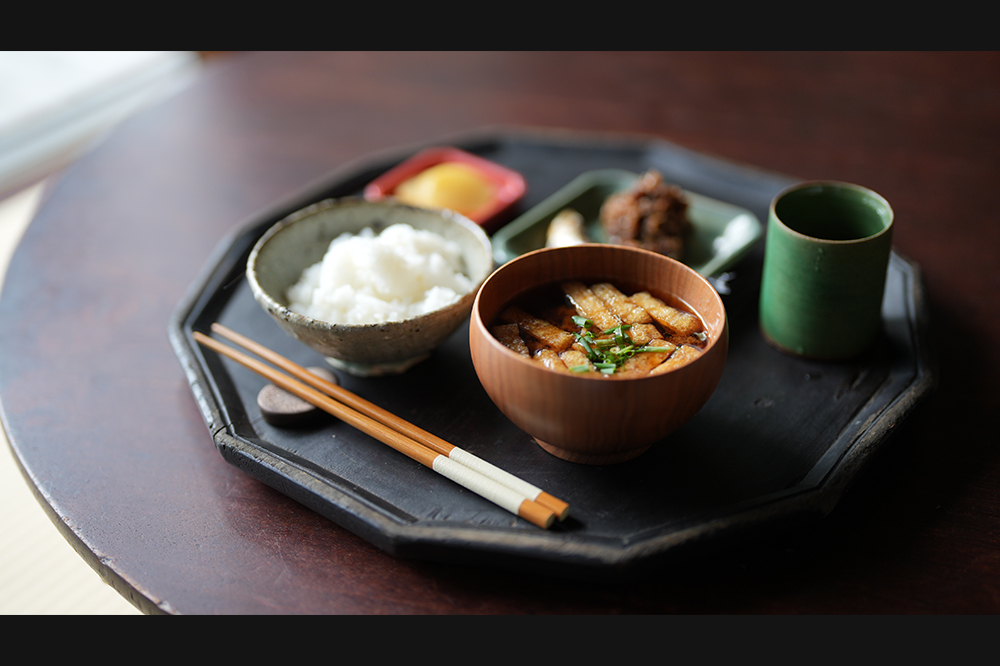 これは朝ごはんです。いつもちゃぶ台の上でいただきますが、毎朝撮影するのがルーティンになっています。左側の窓から差し込む朝陽を生かして斜めから撮ることが多いです。これも明暗があり、メリハリの効いた僕好みの作品。この色の感じも好きですね。緑色の湯飲み、たくあんを乗せた赤い小皿など、色再現性もとても気に入っています。毎日朝食を撮影していると天気によって明暗度が変わり、違った雰囲気に仕上がるのも興味深いところです。この日は曇りでしたが、朝陽が出ているともう少し赤く明るい感じになりますからね。