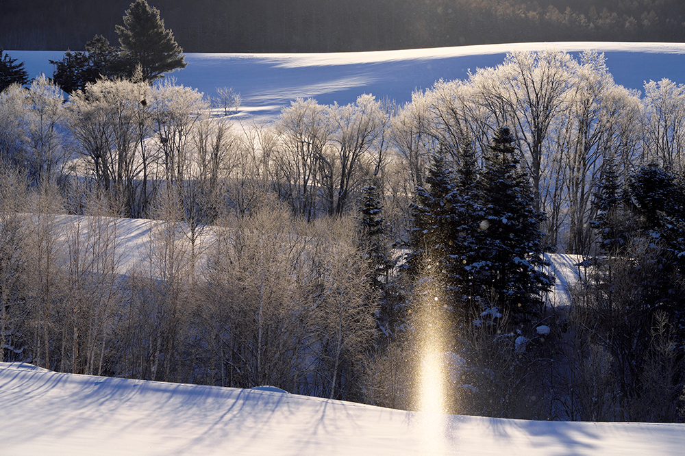 強烈な逆光の中にサンピラーは現れますが、このような過酷な条件でもα7R IVに比べて明らかに解像性能・階調性能がワンランクアップしたと実感します。こちらの作品のように照度差の激しい被写体においても、青い影の部分の階調、サンピラーの照度差の高い粒子も忠実に表現してくれます。高画素数で解像性能高いと言う事は風景写真にとってはとても頼りになるものです。