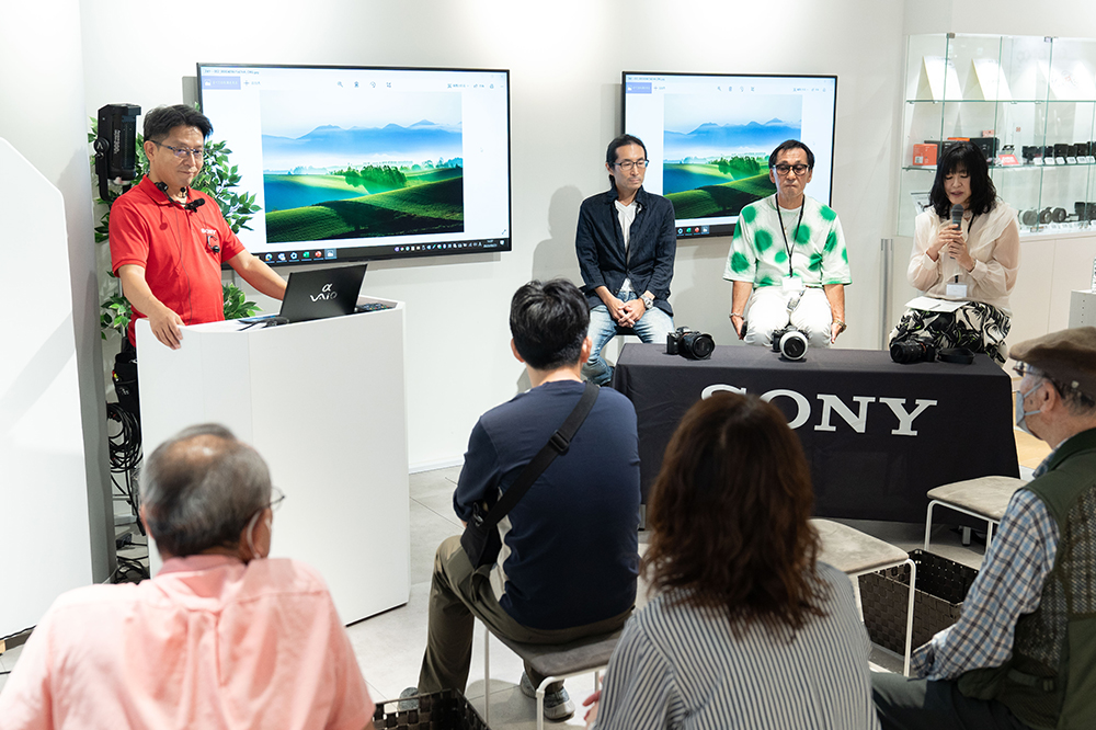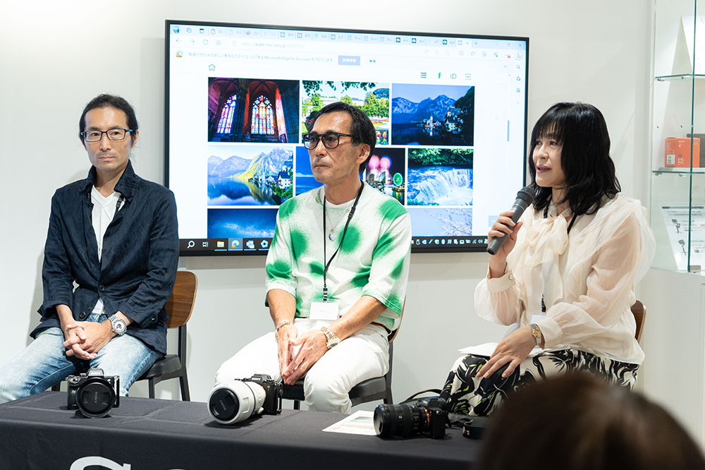 αユーザーの作品ギャラリー&コミュニケーションサイト「αcafe」で実施された「2022年αcafe CHOICE作品年間大賞」。2023年9月18日(月・祝)〜10月1日(日)までソニーストア銀座で開催された「αcafe CHOICE作品写真展」では、年間を通して総数 10,000票を超えるbravo!の投票で選ばれた大賞とノミネート作品、全12作品を展示。期間中にあたる9月23日(祝)には、年間大賞を受賞したNacoさん、ノミネートされたbushiさん、RC Fさんの3名を招いてのトークショーが行われました。