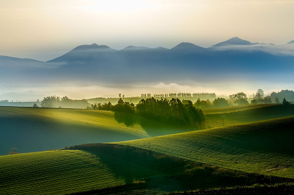 Naco:はい、10月14日朝6時半に撮影した、北海道の美瑛の風景です。たまたま帯広で用事があり、そのついでに秋の北海道の風景を撮り行こうと帯広から美瑛までレンタカーで200キロくらい走りました。ふだん東京では20キロくらいしか走らないので、知らない土地で200キロの移動はかなりの大冒険です。