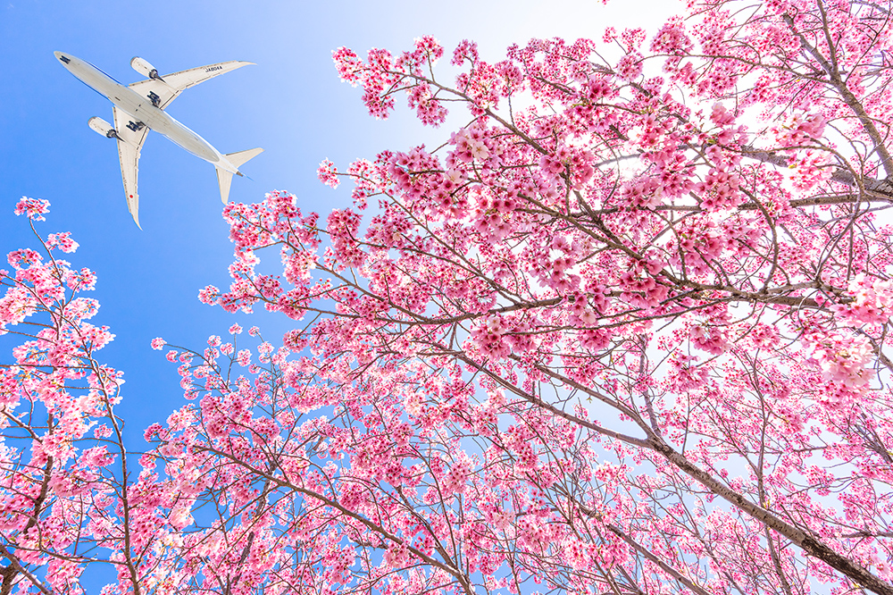 伊丹周辺では早咲きのカワヅザクラとともに飛行機を撮影しました。春は桜を撮る機会が増えると思いますが、少し角度が違うだけで撮れるシーンが変わります。この時は対角の位置をイメージして、桜と飛行機を配置しました。桜の時期はぜひいろいろな場所で、いろいろな角度で写真を撮っていただければと思います。