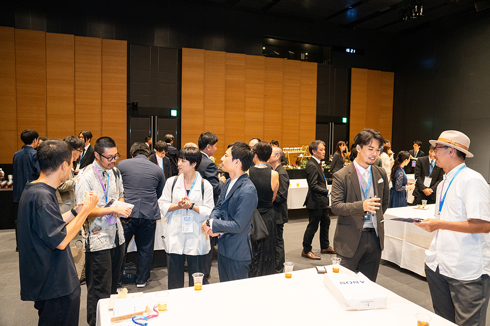 その後は会場を移し、交流会を実施。軽食とドリンクが用意され、立食スタイルで行われた交流会。受賞者、審査員、メディア関係者、ソニーの関係者が自由に移動しながら交流を図りました。会場は和気あいあいとした雰囲気で、審査員が作品について受賞者に質問をしたり、メディア関係者と受賞者が名刺交換をしたりと、賑やかに進行。多くのテーブルに人の輪ができ、会話に花を咲かせていました。ふだんは接点がない方と交流する、有意義な時間になったようです。