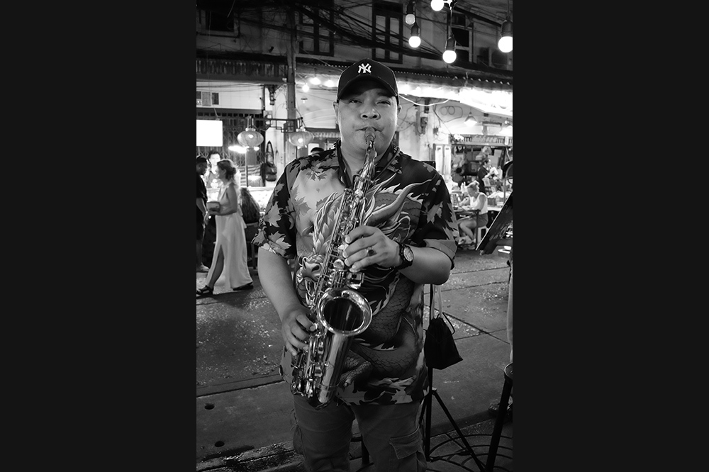 路上のサックス奏者とアイコンタクトをし、撮影させてもらった一枚。とっさにシャッターを切りたくなった瞬間でも、軽快で正確なピント合わせが行なえる。