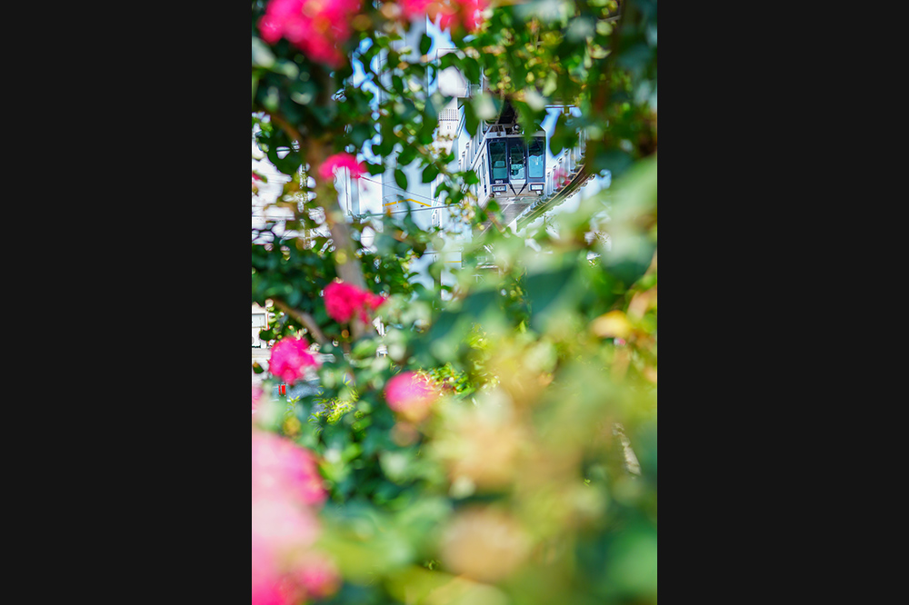 今回訪れたのは、世界的にも数例しかない「懸垂式」のモノレールである湘南モノレール。50年以上の歴史ある路線だけに、後進の懸垂式モノレールよりも高度が低く、まるで街や森をかすめて飛ぶように走るその姿は鉄道絶景と言えよう。カメラはα1 IIの1台でモノレールを乗り降りしながらスナップを楽しんだ。レンズ1本のみ装着したα1 IIを首から下げ、小さなカメラバッグ1つで旅するフォト散歩は自由度が高く、フットワーク軽く撮影に没頭できた。スナップする上でこだわったのは、列車が地上を走るのではなく、空を飛ぶという違和感を伝えること。いつもと違い、レンズを空に向けて列車を撮るという姿勢に戸惑いつつも、季節を感じさせる入道雲や、サルスベリなどの花々を添えて、テンポ良く撮影を進めた。このような撮影ができるのも、最高の性能を持ちながら小型・軽量化を実現したαのボディと、G Masterならではと言えよう。フラッグシップのカメラやレンズは、どうしても力んで構えてしまいがちだが、三脚も使わず気軽に楽しむスナップ撮影はいつもと違う喜びがある。たまには、ミニマムな装備でフォト散歩に出かけてみてはいかがだろうか?
