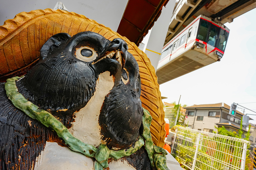 「なんで電車が空を飛んでいるんじゃぁ〜!?」なんて驚いていそうな、タヌキの表情が面白い。機材が軽くなると、フットワークも軽くなり、作品の自由度も広がる。「いい写真を撮るぞ!」という気負いを抑え、自由な発想でカメラを構えることで、新たな視点が広がるのかもしれない